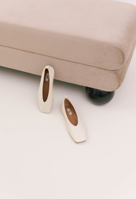 Sapato raso com ponta quadrada em croute