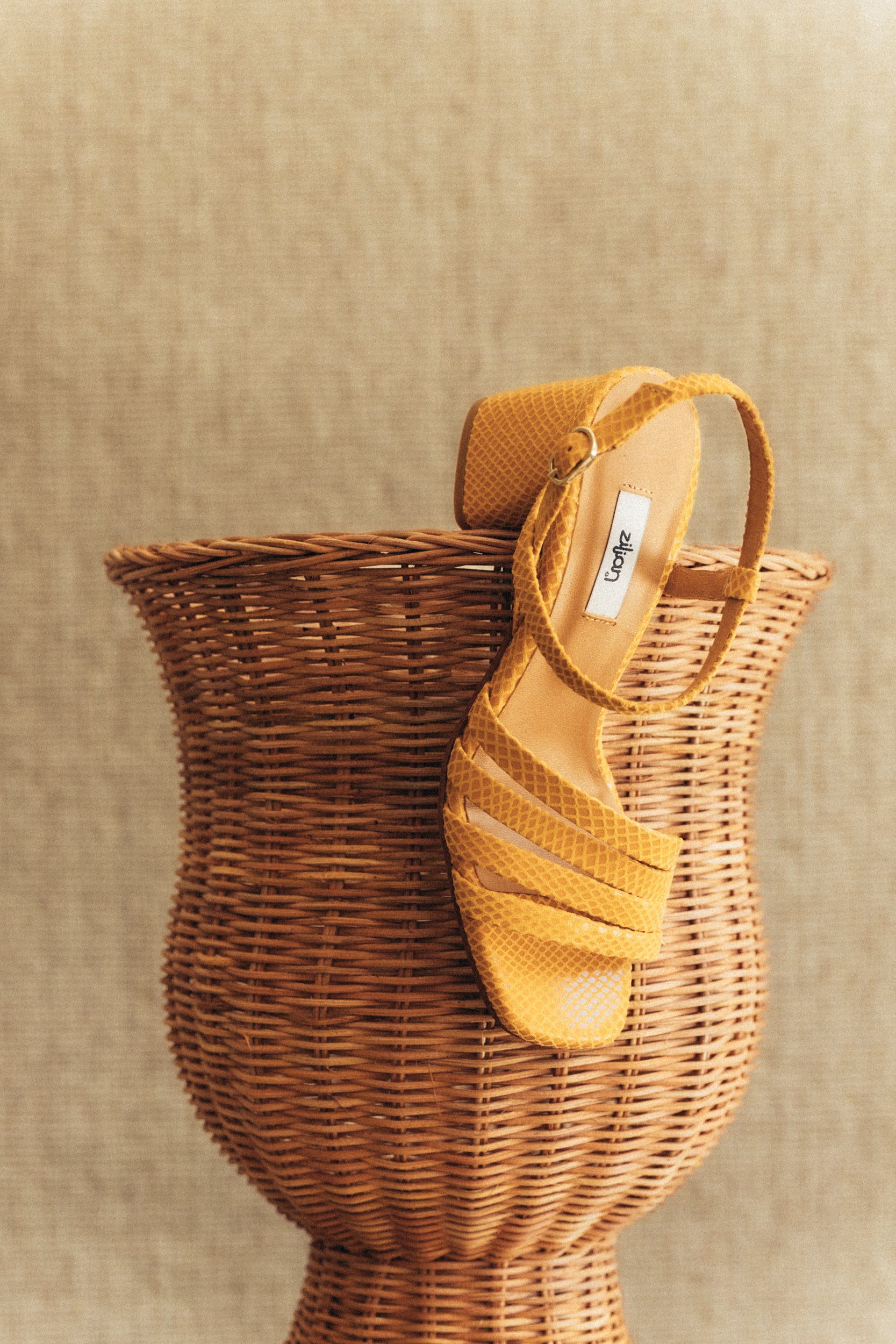 Sandália de salto alto em ráfia
